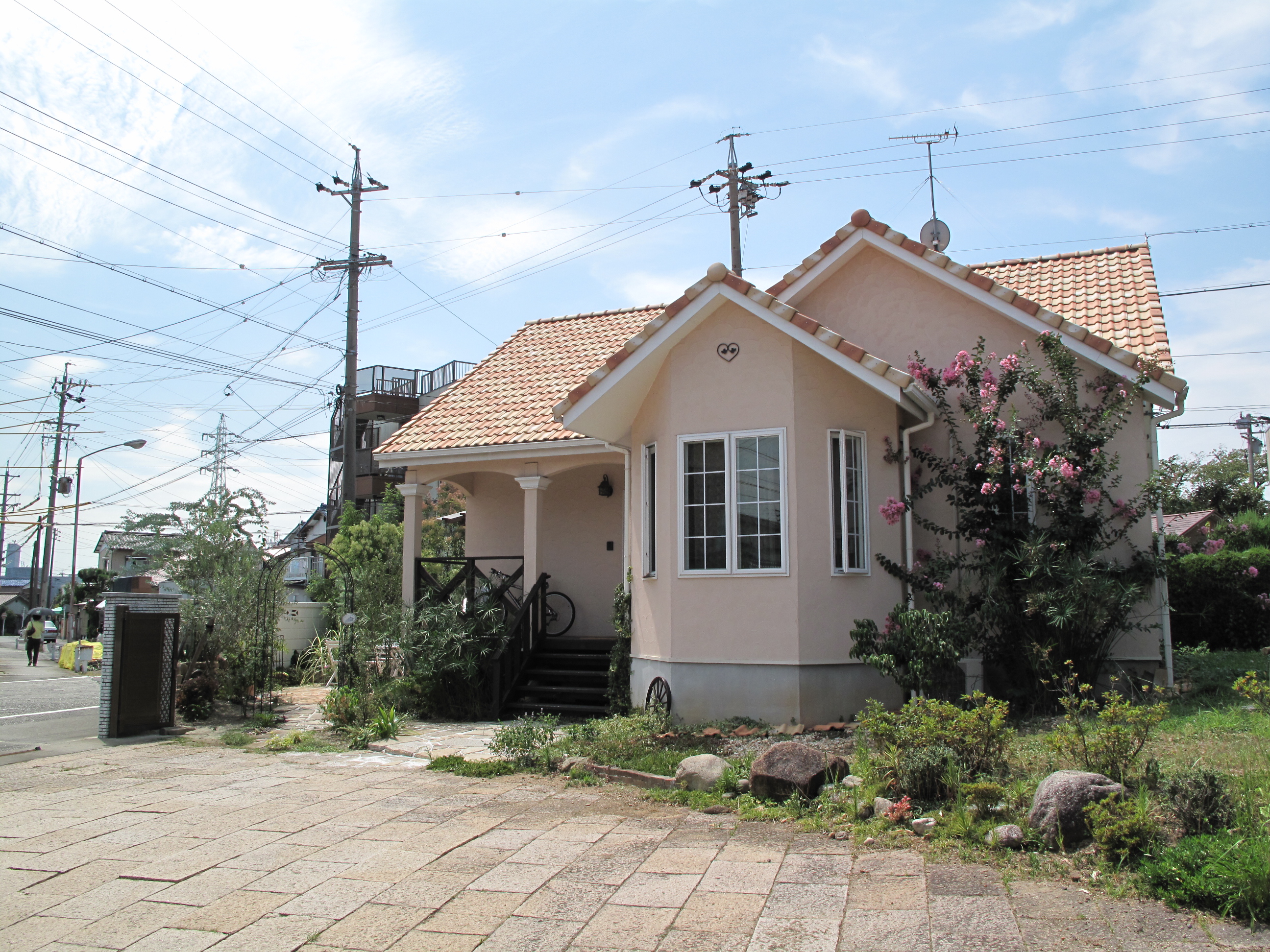 家を建てる前から植わっていた植物を撤去し、新たな植物で彩りました。足元には 中国の歴史が刻まれているユーズドストーンや、レンガ、今まで使われてきた古枕木を再利用など味わいがある仕上げとしました。