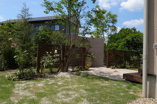 愛知県の緑あふれる庭・外構デザインのことなら春日井市のティーズガーデンスクエアにご相談ください。多種多様の雑木や植物で洋風でも和風でもない美しく年を取る懐かしい庭をデザインいたします。