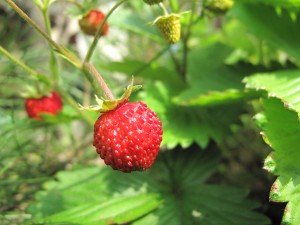 小さいいけれど、自然受粉で生った立派なイチゴの実です。