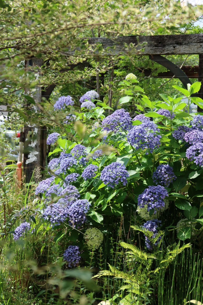 今年も青いアジサイがほとんどで、花茎は濃い青に染まり