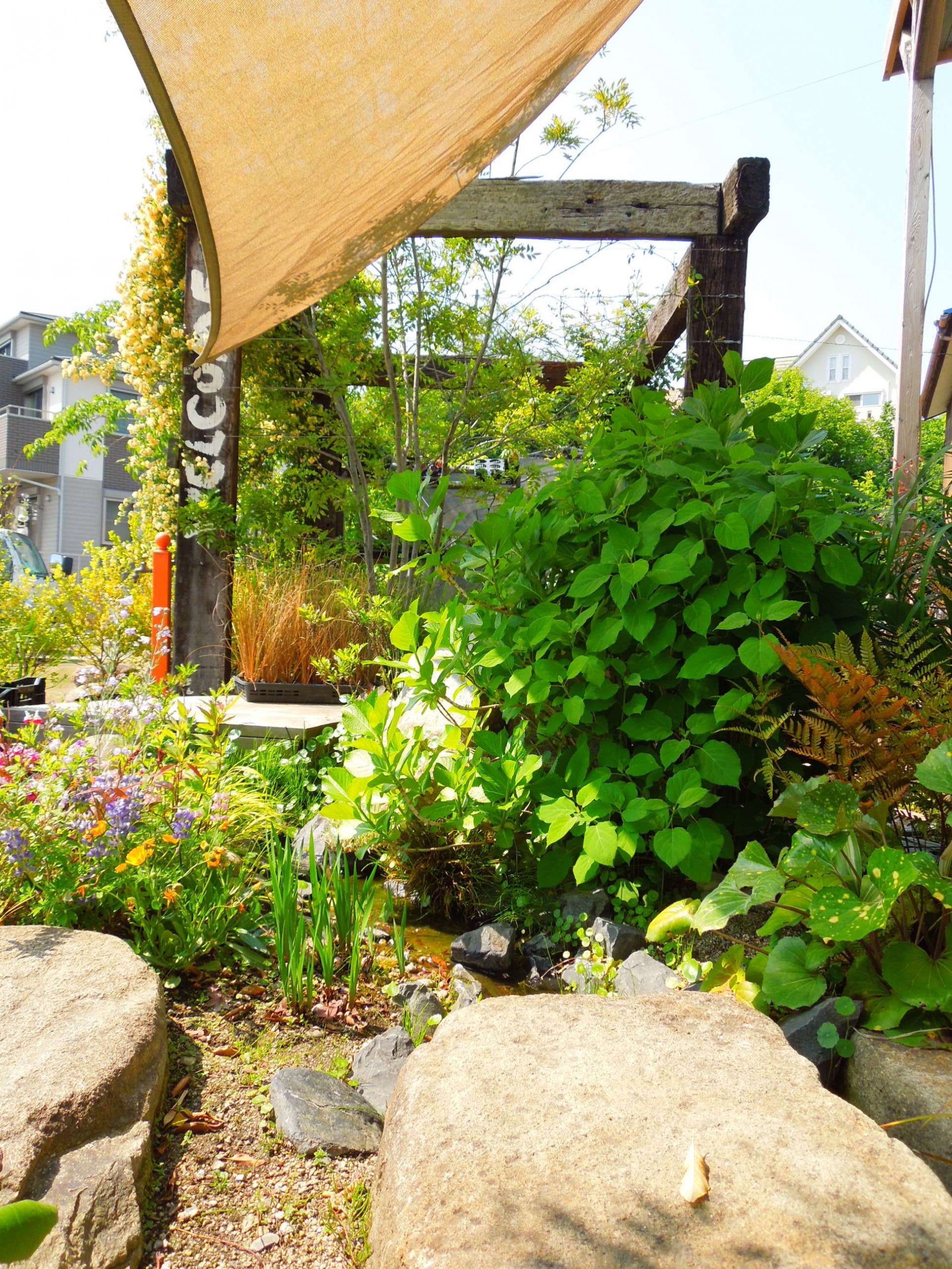 川庭のアジサイ、アナベルとオタフクアジサイが随分大きくなりました。