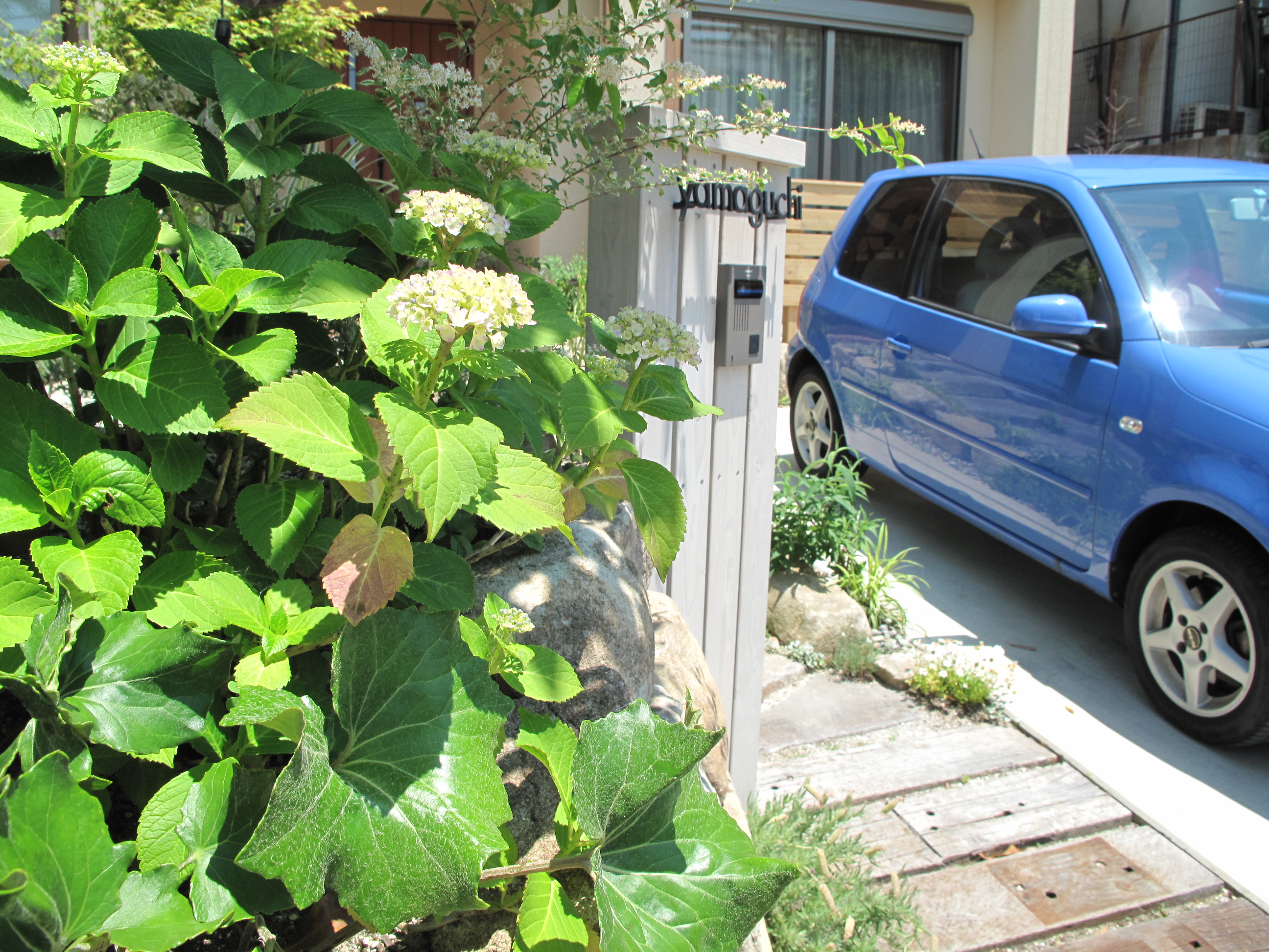設計段階からご相談に来ていただいたので、 お家の色や配置などさまざまな相談をしながら デザインされたガーデンです。