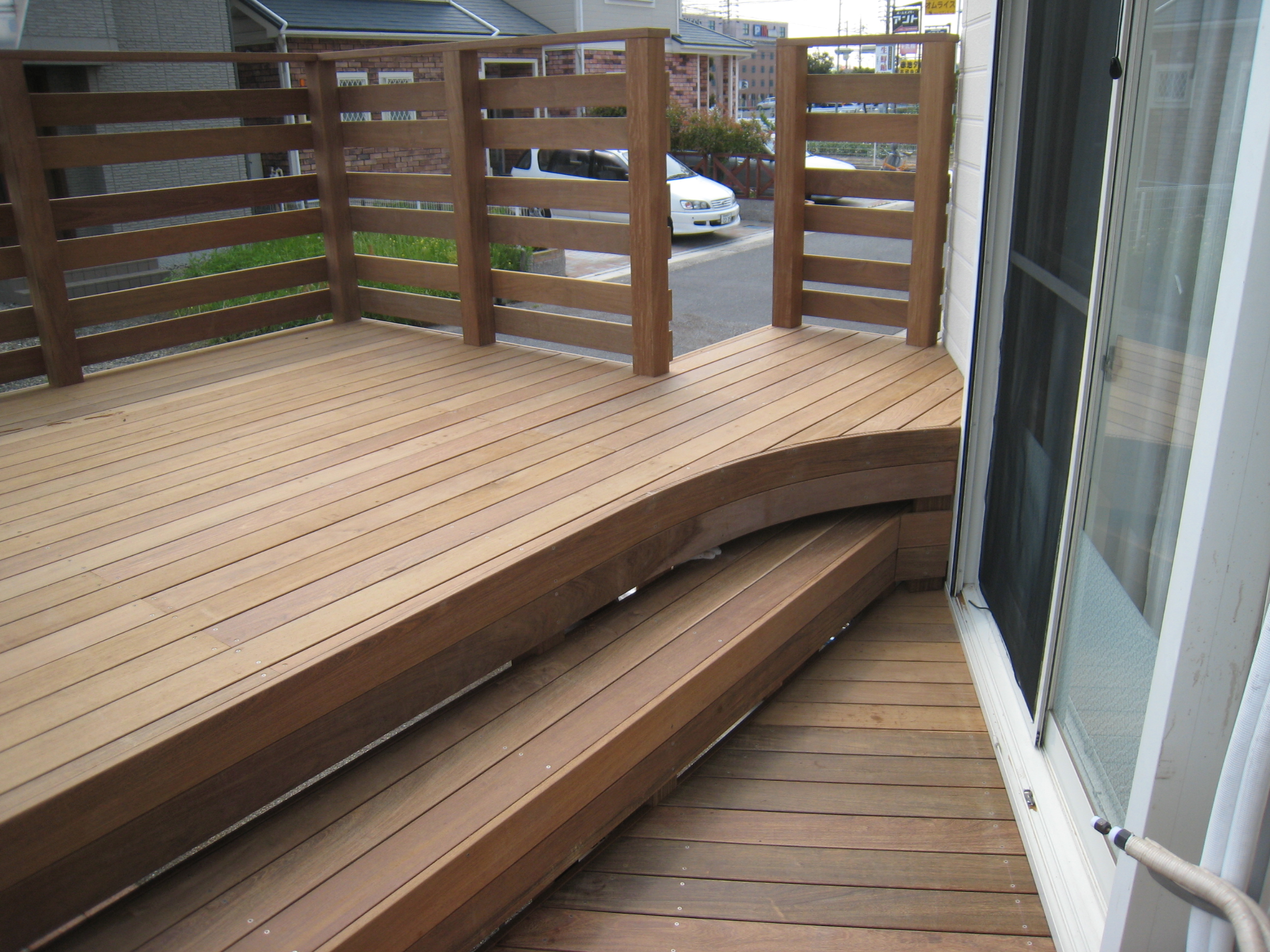 デッキに比べフェンスの色落ちが少ないことが分かります。