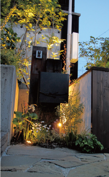 暖かな家族の象徴となる古枕木アプローチ