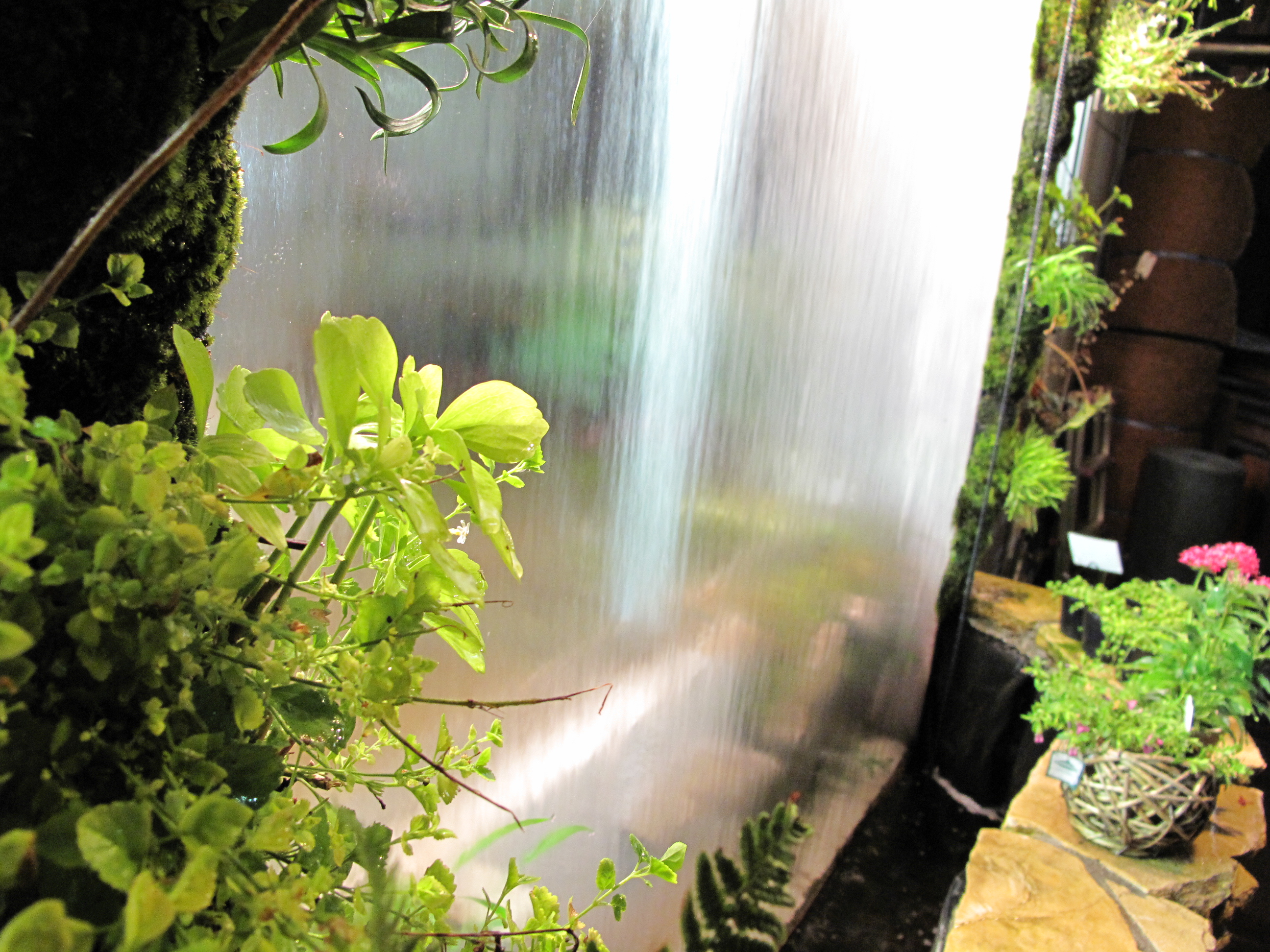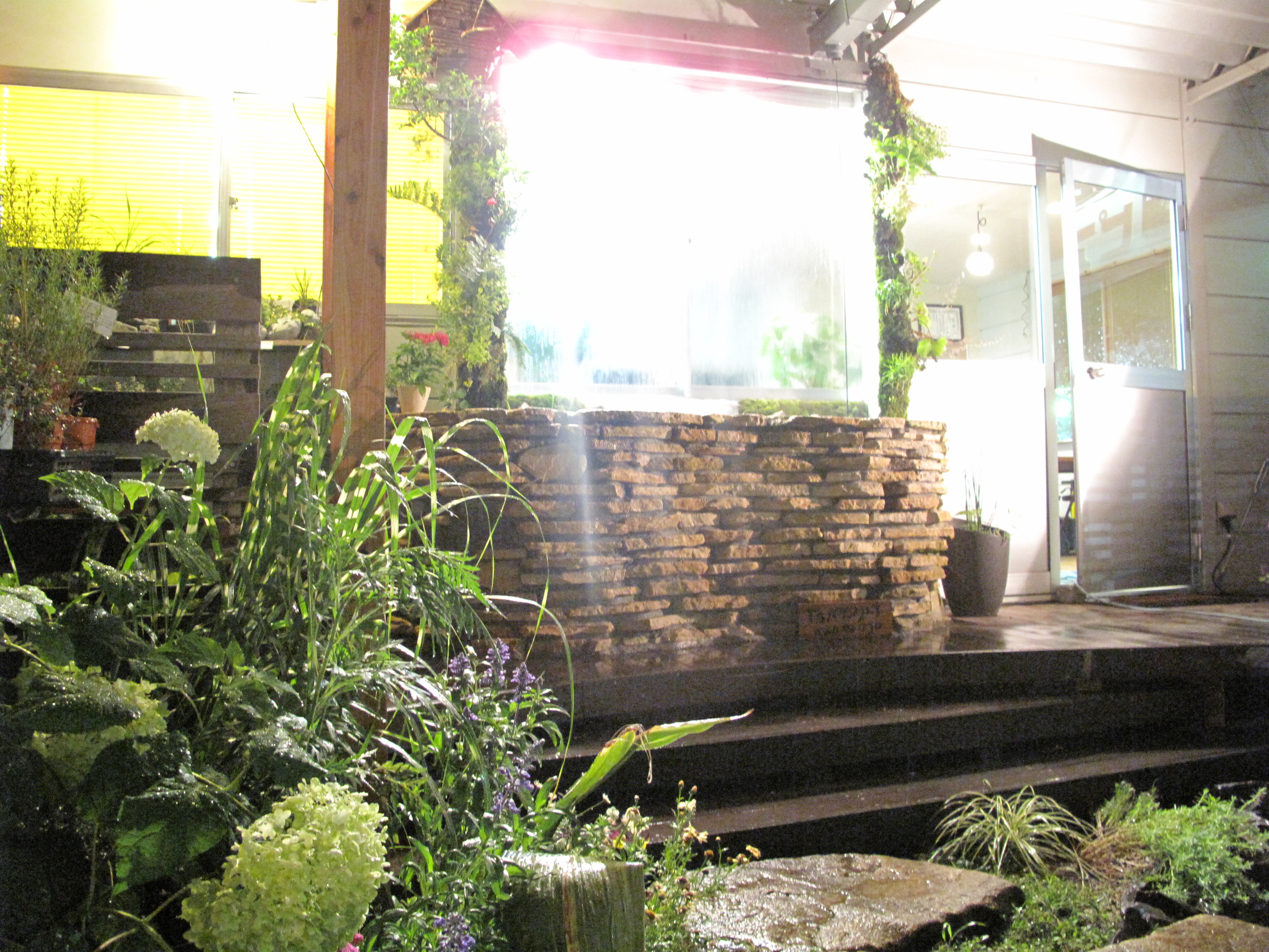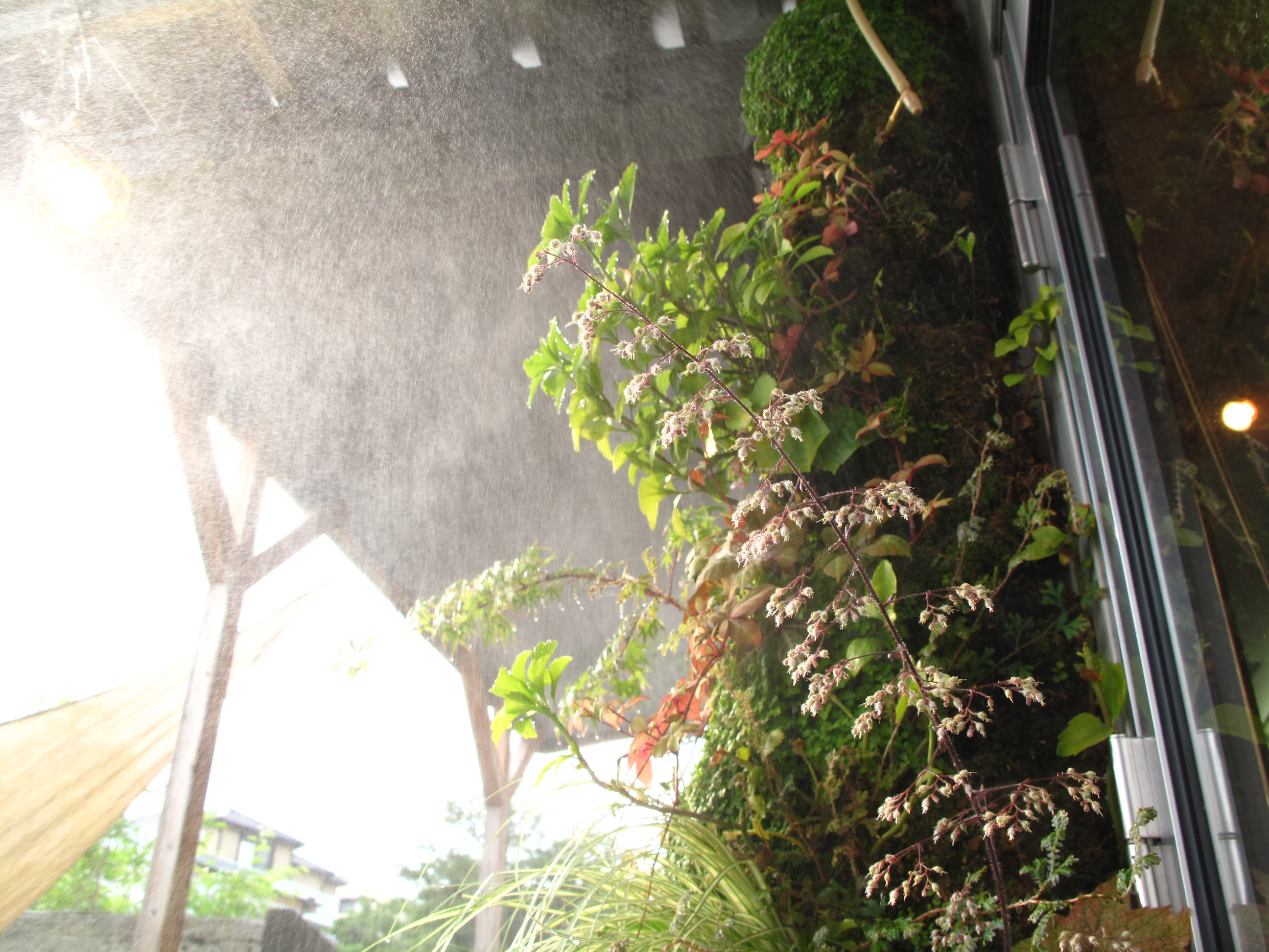 今回のウォーターカーテンは大きさがカナリ大きく(W=1800)重量的にガラスでは難しかったため ポリカーボーネードを使用しました。
