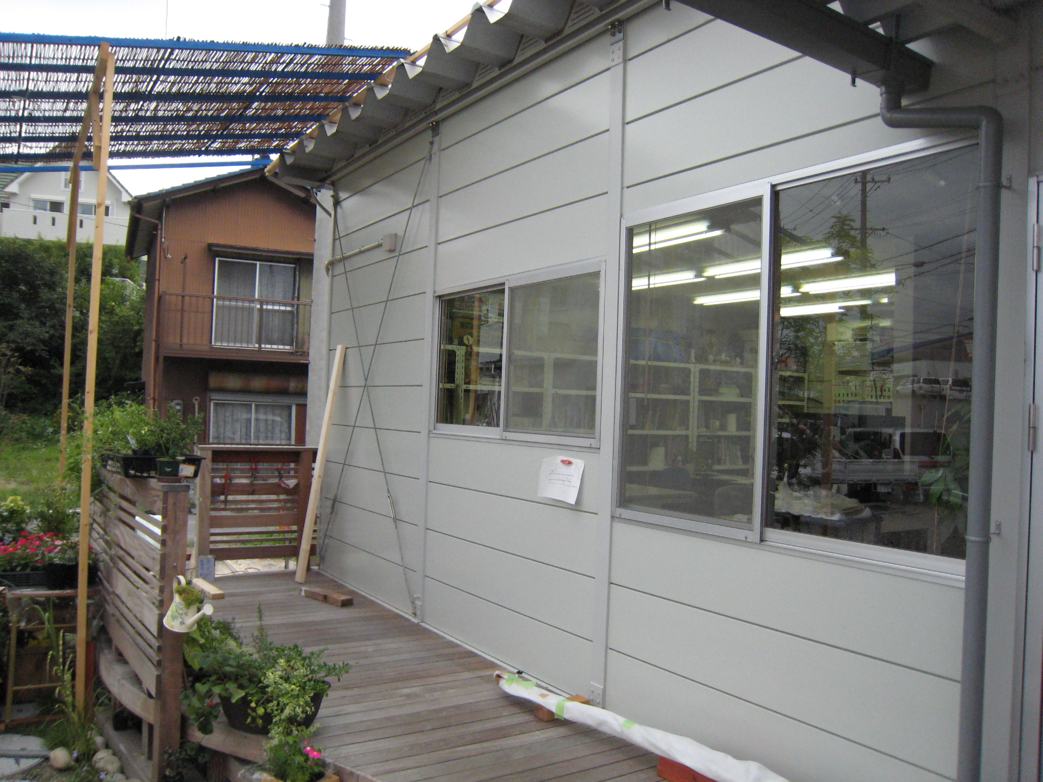 この壁面緑化の生態系には 驚かされます。手前に見えている上に伸びているのはユーカリの木です。