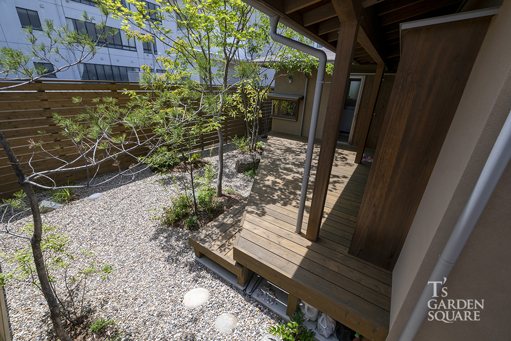 目隠しウッドフェンスでも圧迫感を無くすエコ建築考房の庭