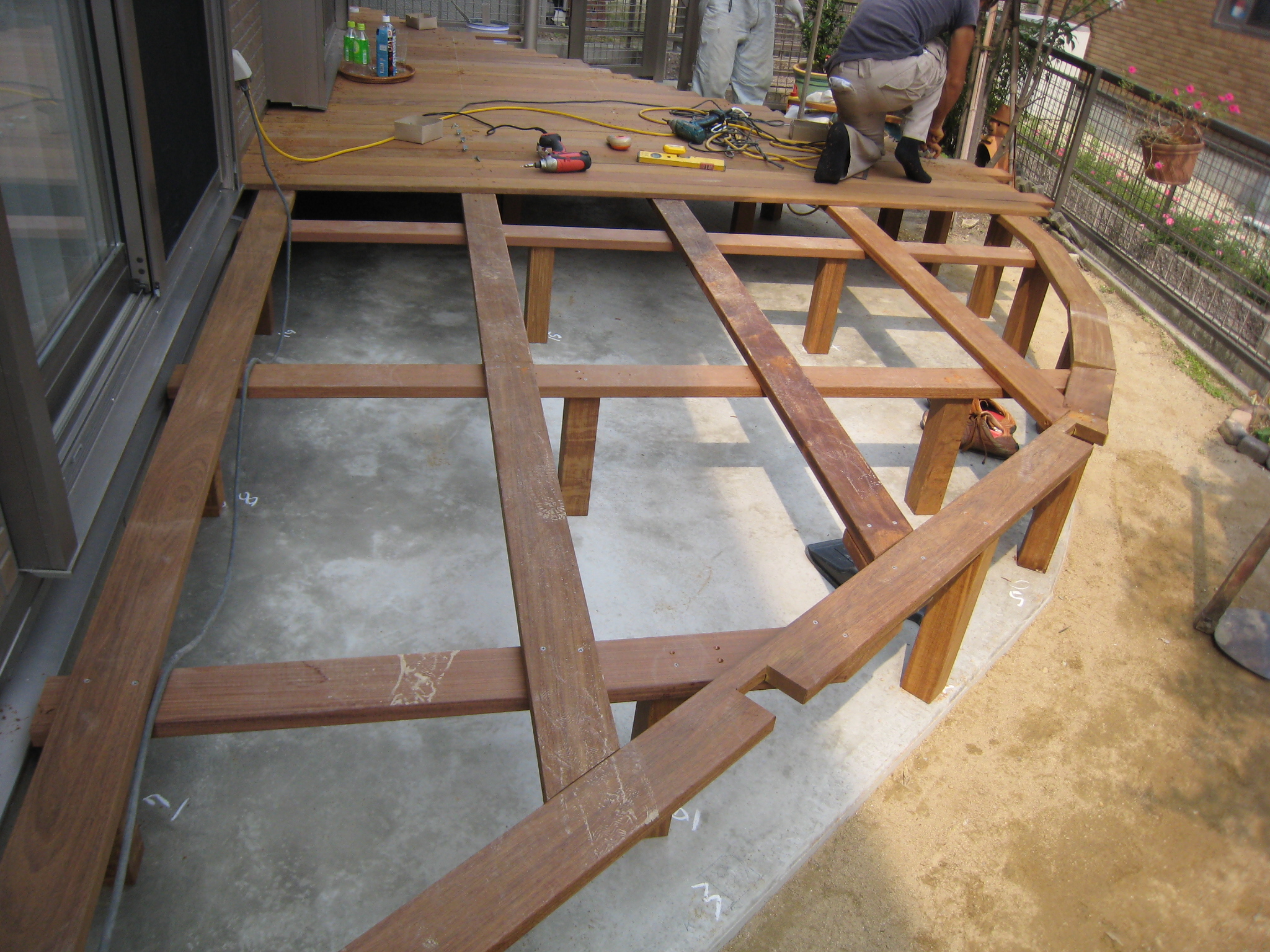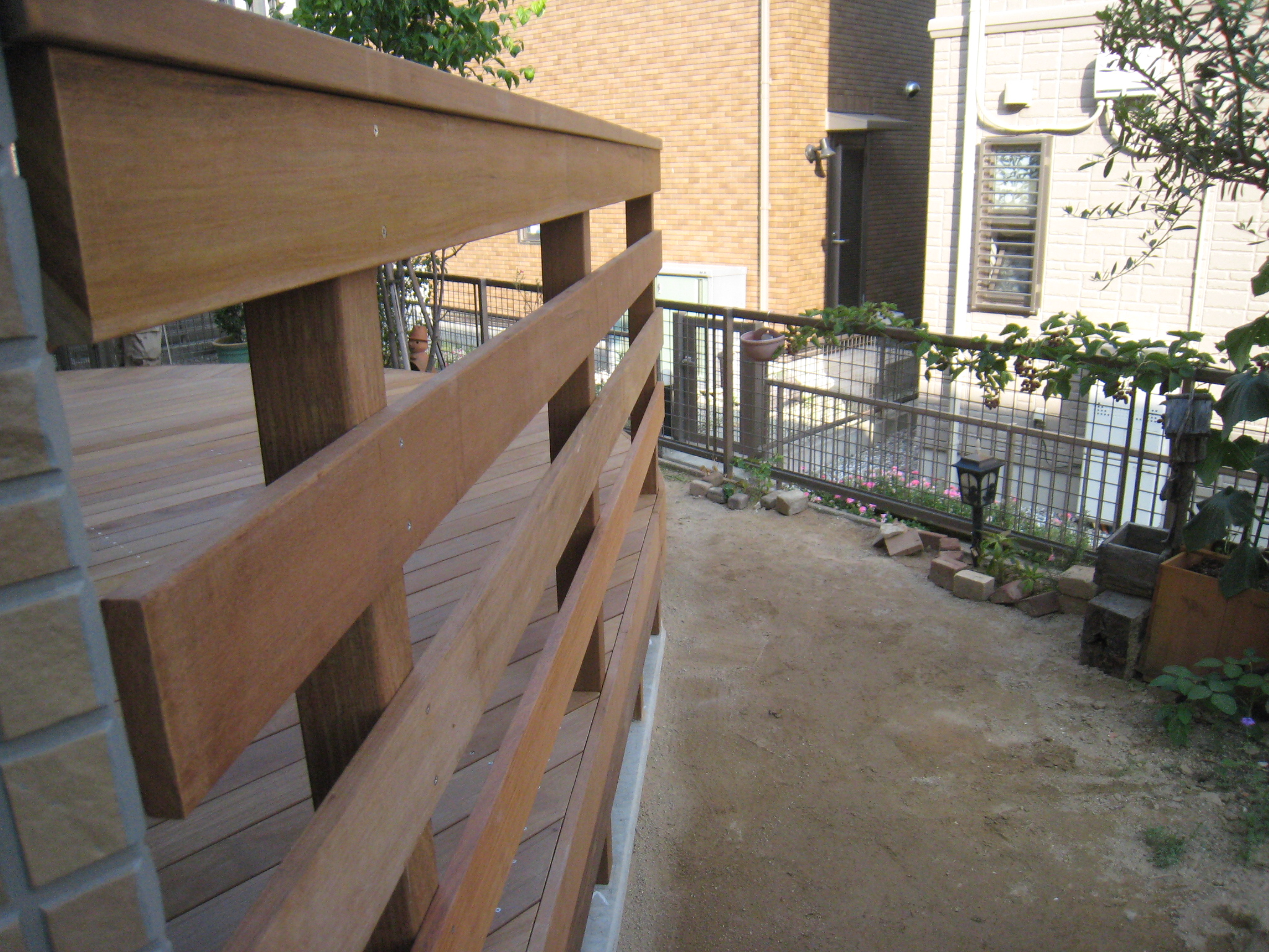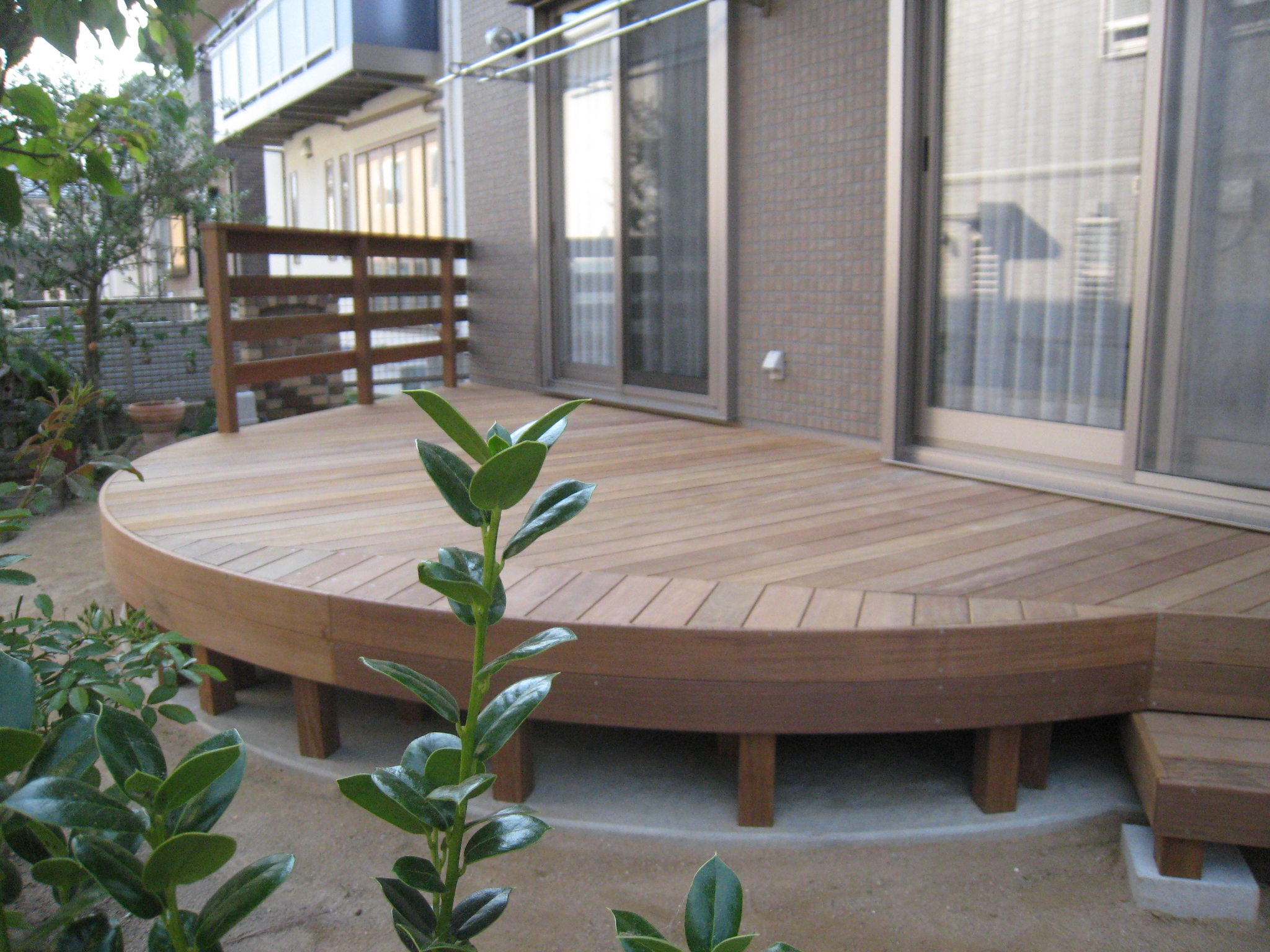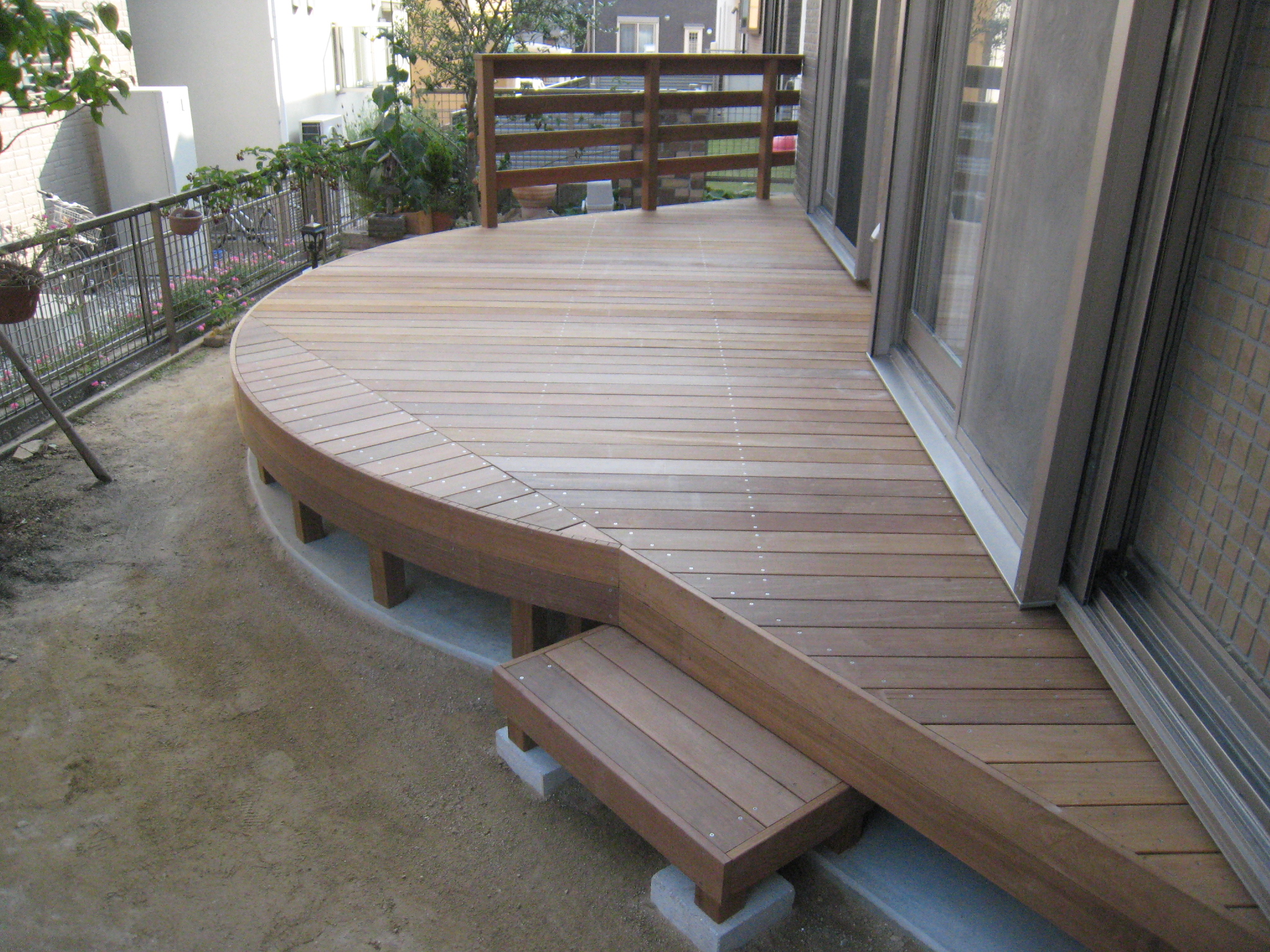 イぺのビックウッドデッキ曲線で優しさ表現・・・。