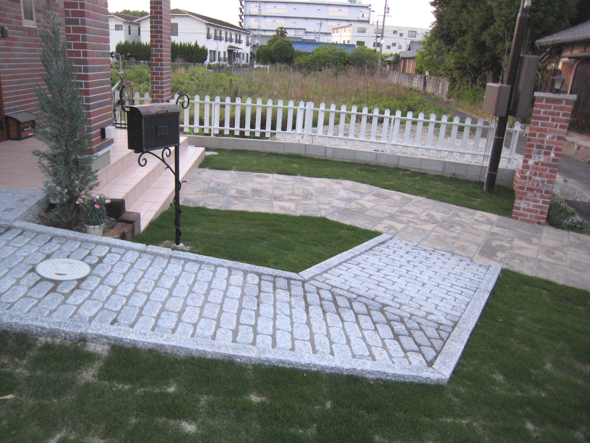 ブロンテペイバーを施工しました。 手割り加工の天然石が持つ豊かな表情を再現したイギリスの香り漂う舗装材です。