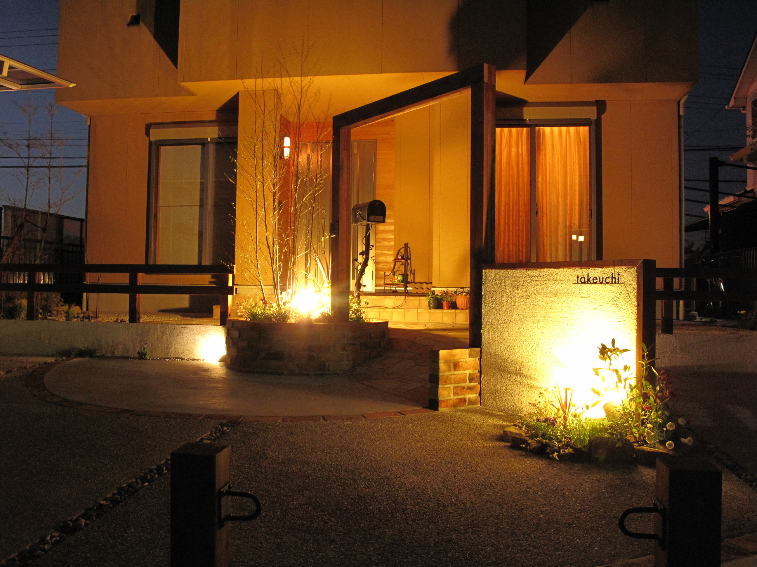 消えていくピンコロの散策路。視線を一点に集めるポーチ。等 あげだすときりがないほどあり それぞれが主張せず上手く助け合っています