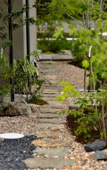 カーポートからの長い導線をさりげなく区切る 目隠しの役目も果たしています。